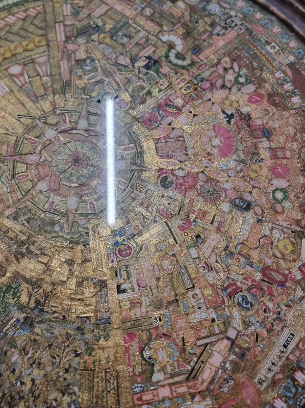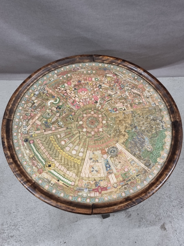 #2177 - Vanha tupakkapöytä jossa lasin alla sikarivyötteitä