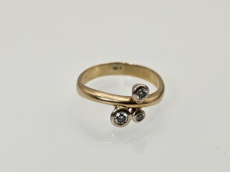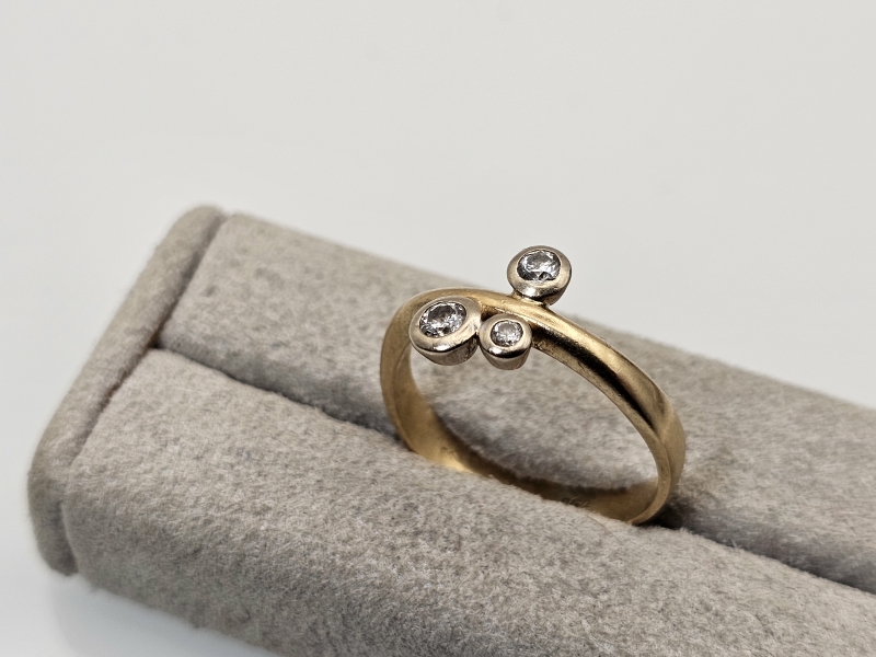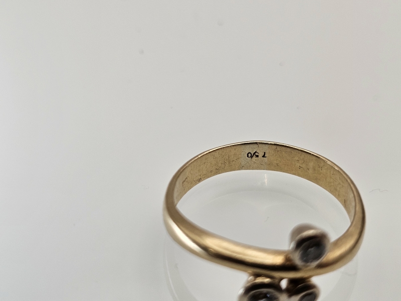 #1146 18k kultainen sormus timanteilla joista isoin n. 0,08ct, 4,85g