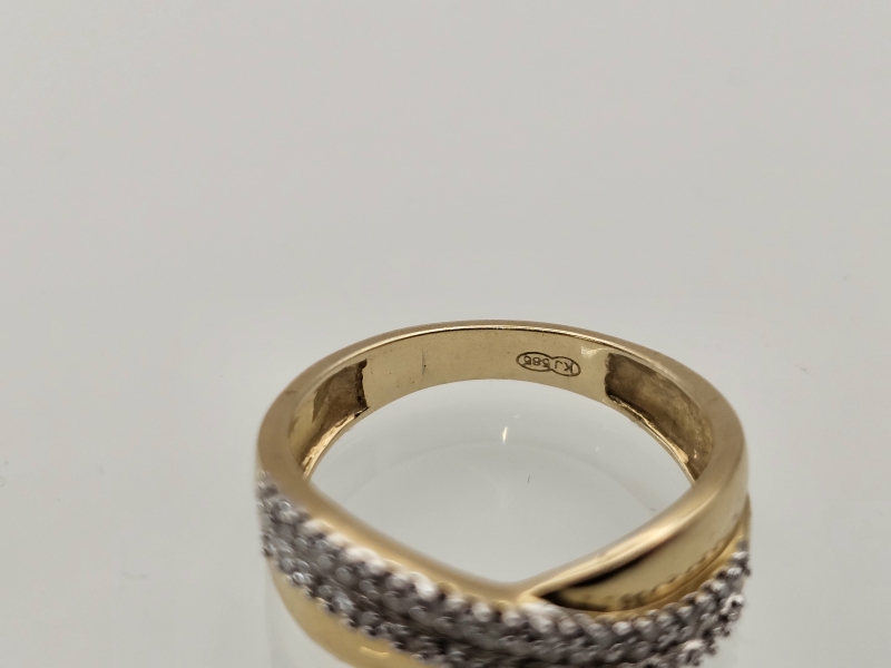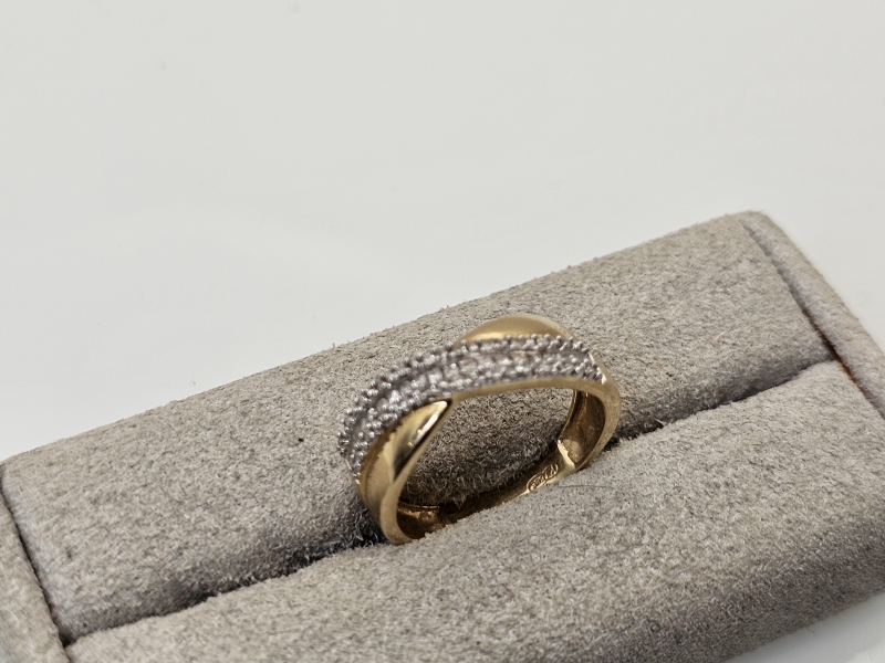 #1148 - 14k valko- ja keltakultainen sormus timanteilla, 3,05g