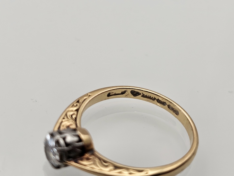 #1149 18k kelta- / valkokultainen sormus noin 0,40ct timantilla, 3,17g