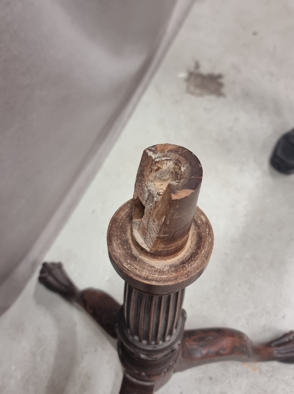 Kulumaa, jalan lukituskiila puuttuu ja pyörien kiinnikkeet taittuneet. Halk. 80cm ja kork. 73cm.