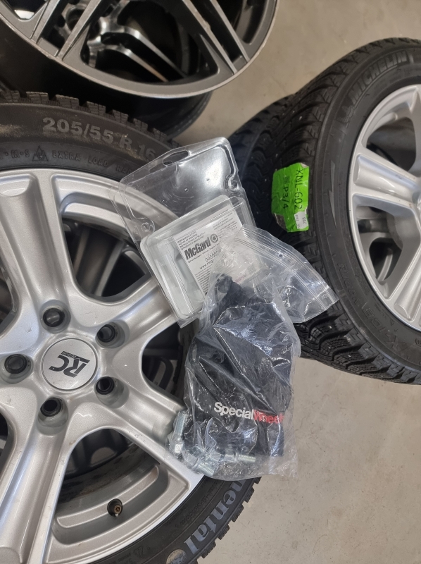#2207 4kpl nastarenkaita: 2kpl Continental 205/55 r16 & 2kpl Michelin alumiinivanteilla + 2kpl alumiinivanteita