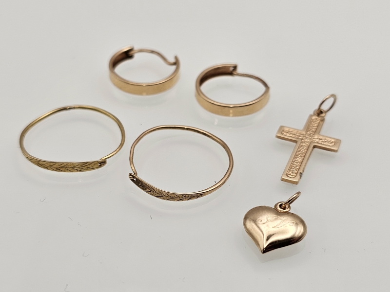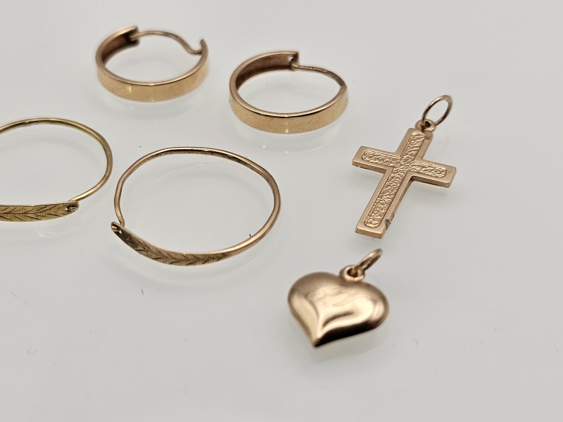 #1182 - Erä 14k kultaa: 2kpl riipuksia ja korvakoruja, 3,61g