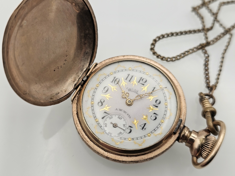 #1192 - Waltham tasku- / kaulakello vuodelta 1896 + perät