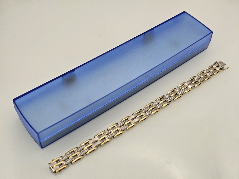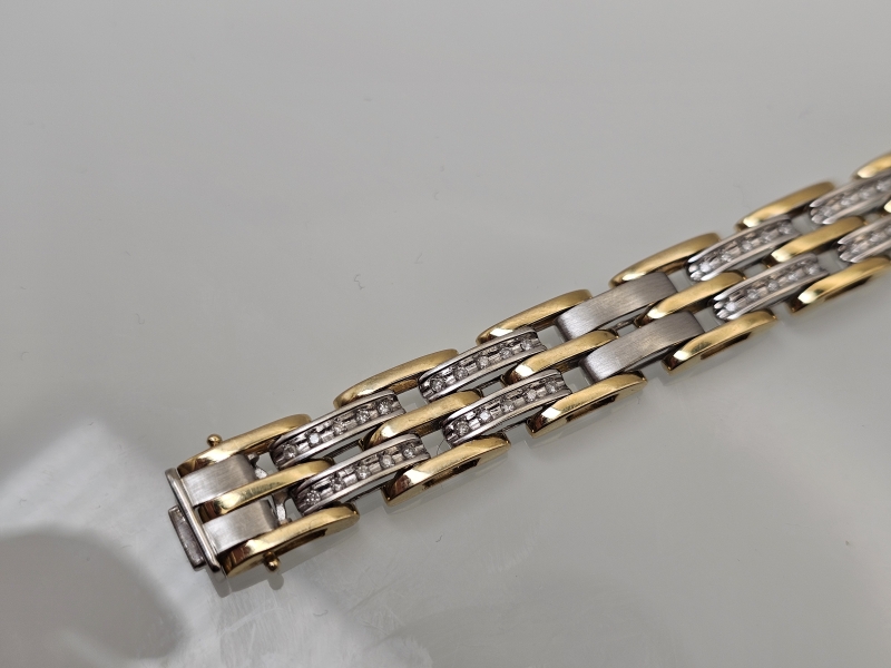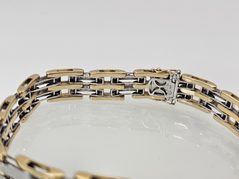 #1194 - 14k valko- / keltakultainen rannekoru timanteilla, 27,74g