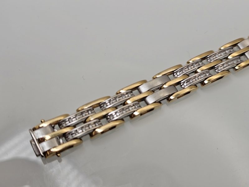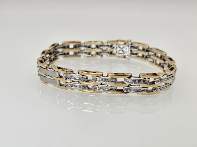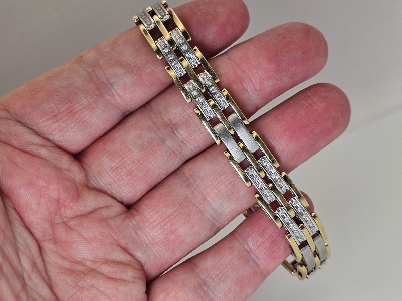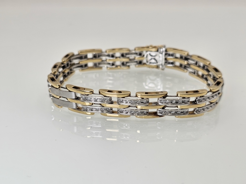 #1194 14k valko- / keltakultainen rannekoru timanteilla, 27,74g