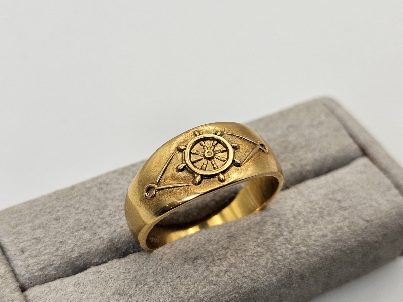 #1208 14k kultainen sormus ruorilla, "kapteenin sormus", 7,63g