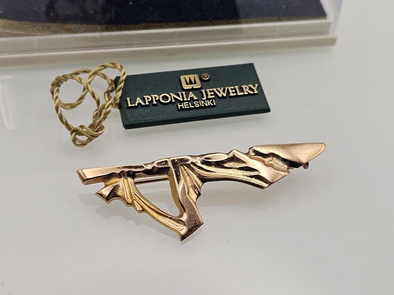 #1221 14k kultainen Lapponia 1895-1995 rintaneula, 5,77g