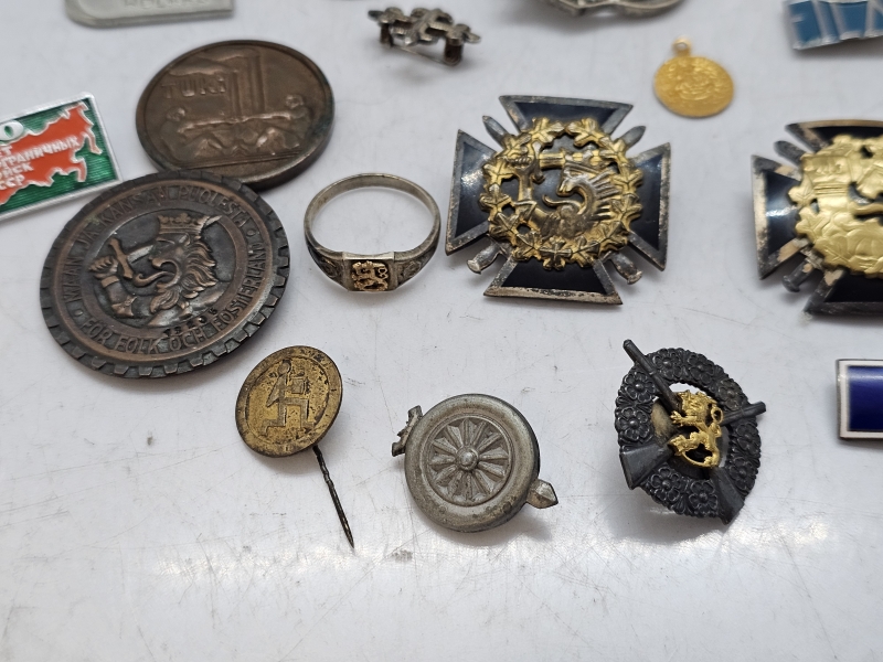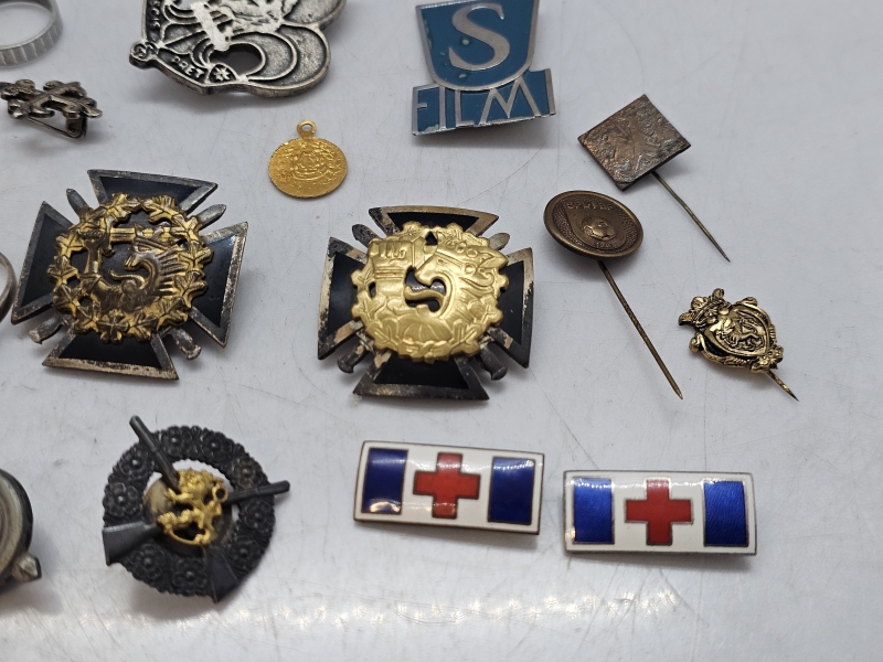 #1667 - Erä militariaa ym.: Mm. Punaisen ristin emalimerkkejä, kurssimerkkejä ym.