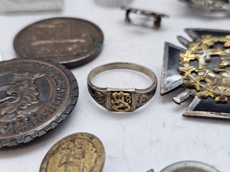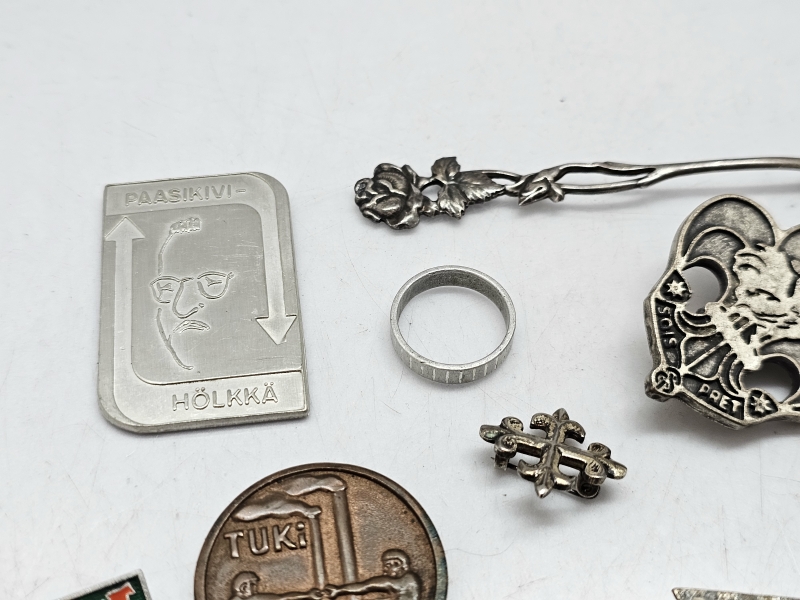 #1667 Erä militariaa ym.: Mm. Punaisen ristin emalimerkkejä, kurssimerkkejä ym.