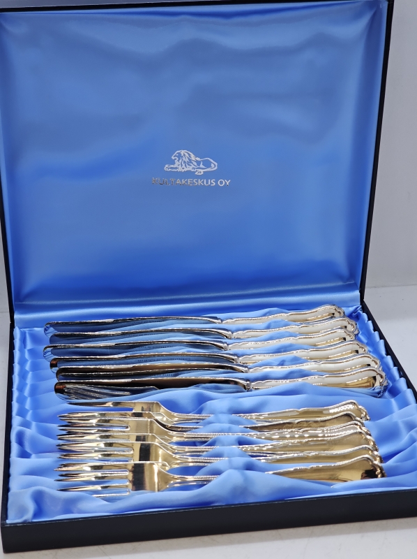 #1225 - 6+6kpl hopeisia Kultakeskus chippendale -aterimia