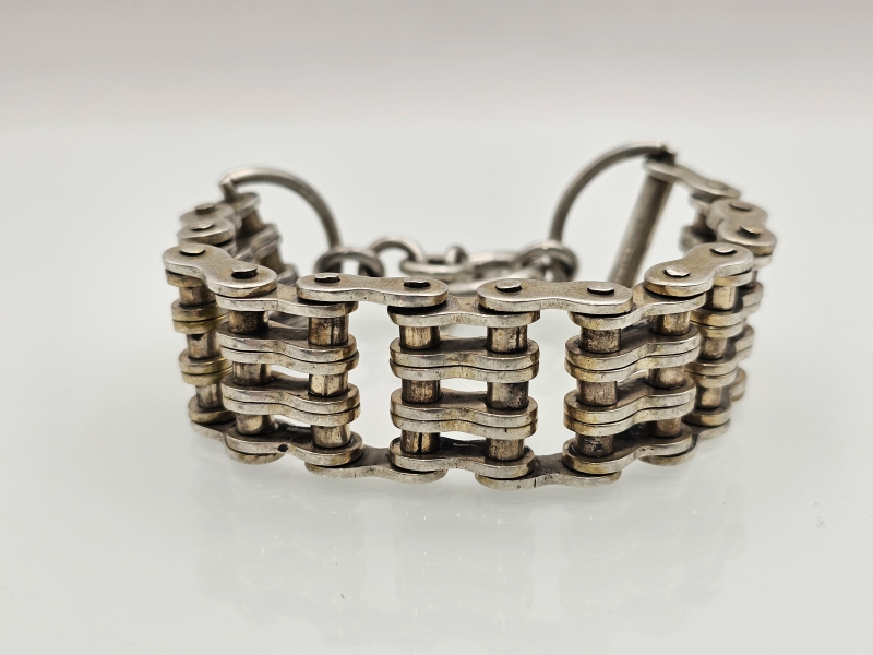 #1243 - Hopeinen "pyöränketju" rannekoru