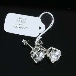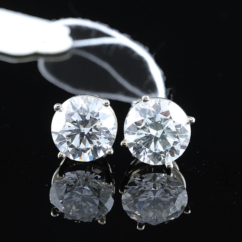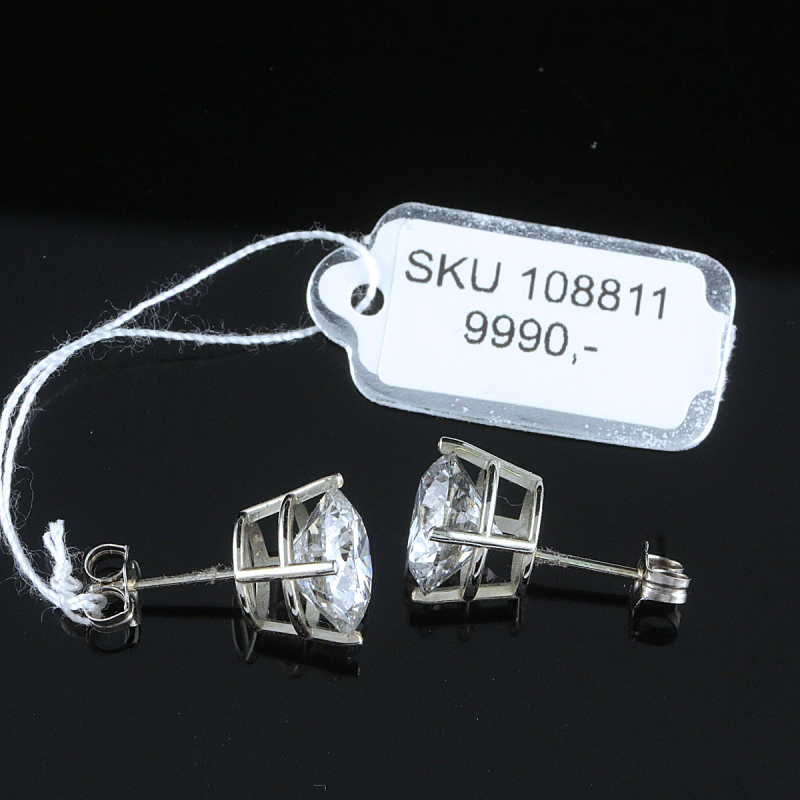 #1262 14k valkokultaiset korvakorut lab. timanteilla [2,53ct / 2,59ct], 2,35g. Ovh. 9900€