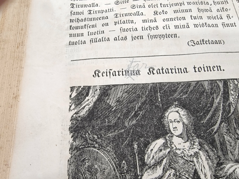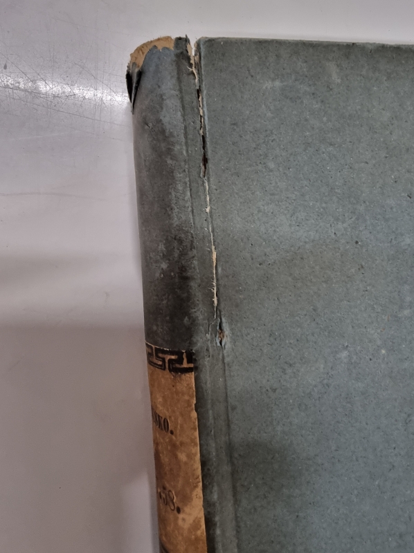 Kansissa kulumaa ja vikoja. Joissain sivuissa kirjoitust, likaa ja taitoksia.
