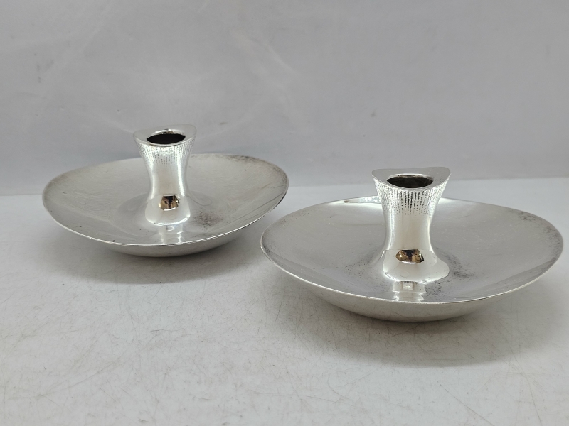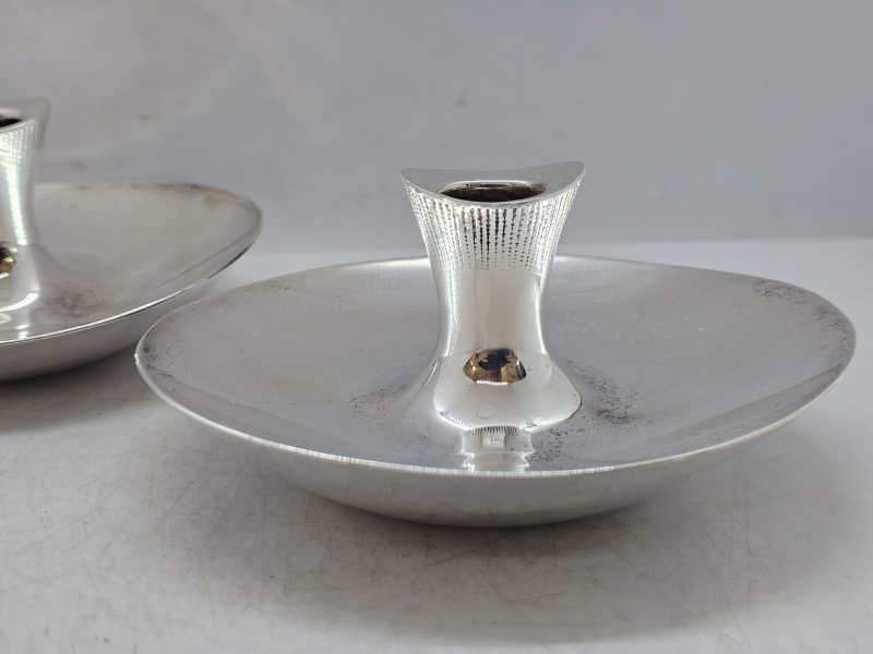 #1293 - 2kpl Tapio Wirkkala hopeisia kynttilänjalkoja, v. 1960