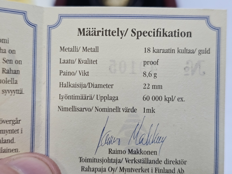 #1302 Kultakolikko: Kultamarkka 2001, 8,6g