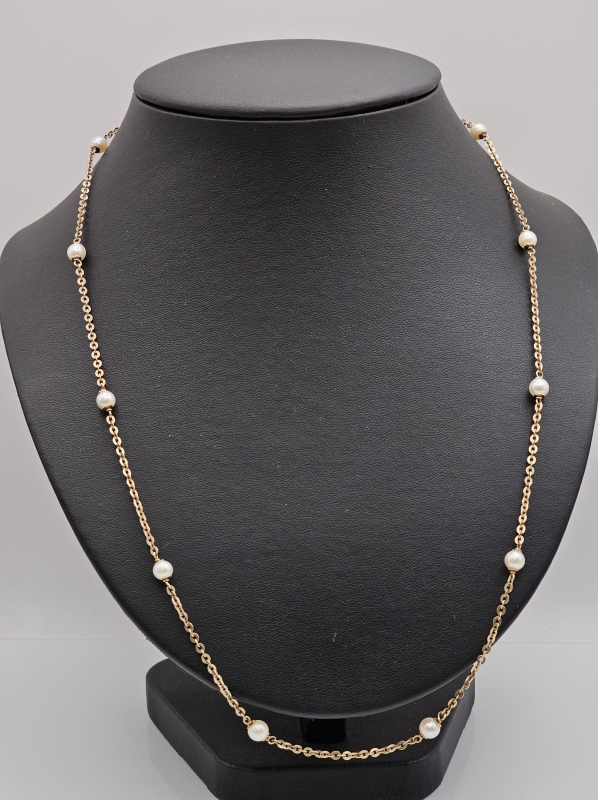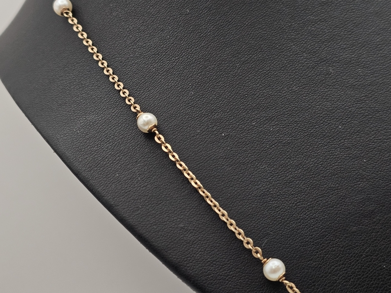 #1347 - 14k kultainen kaulaketju helmillä, 8,48g