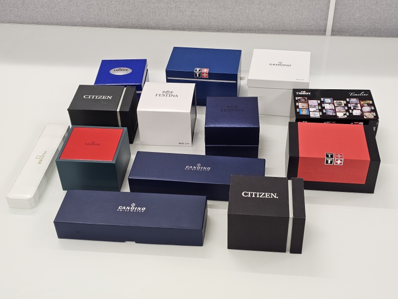 #1316 - Erä tyhjiä kellojen koteloita: Mm. Citizen, Tissot, Zenith ym.