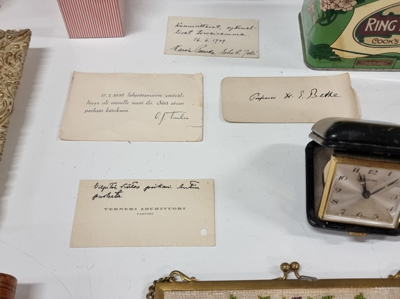 #2431 - Erä tavaraa: Vanha käsilaukku, rasioita, Aarikka ym.