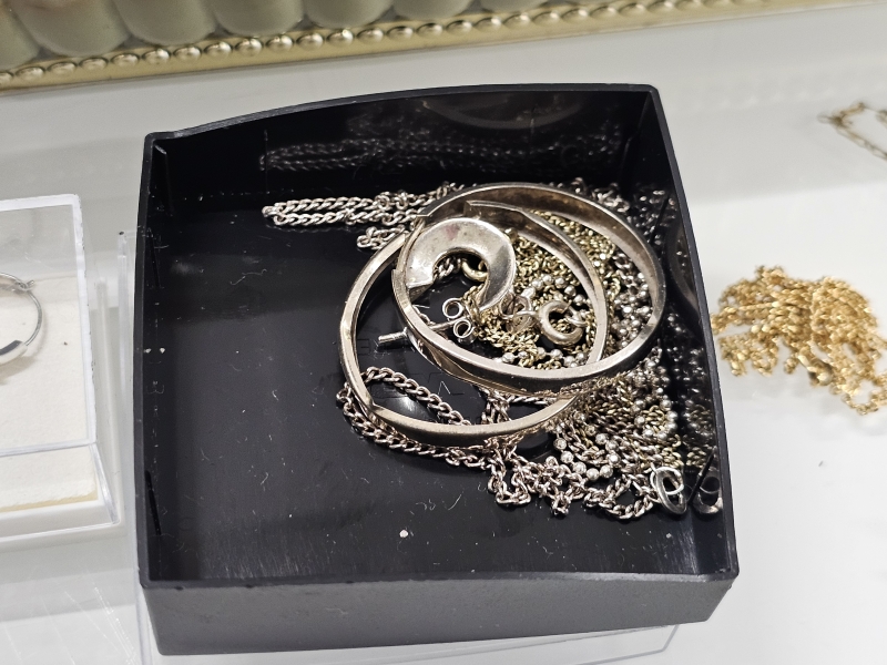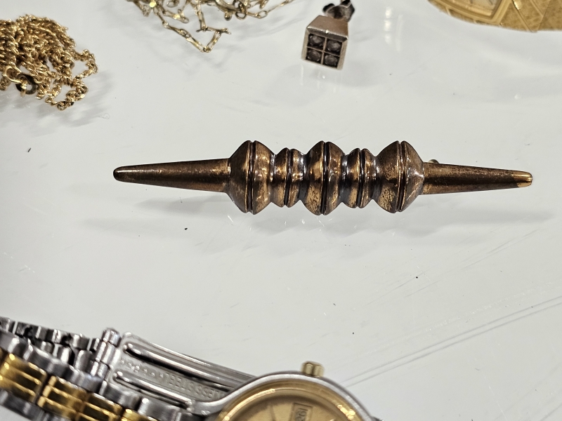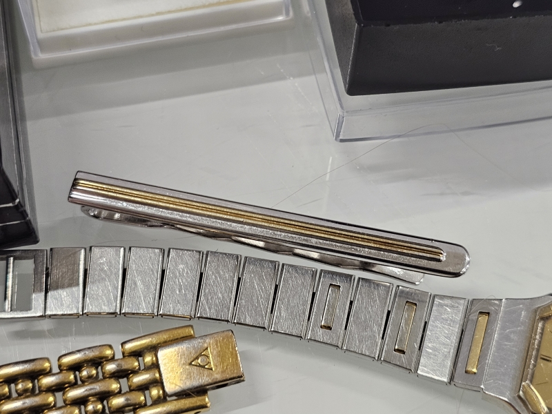 #1324 Erä koruja ja kelloja [Seiko, Certina ym.], osa koruista hopeaa