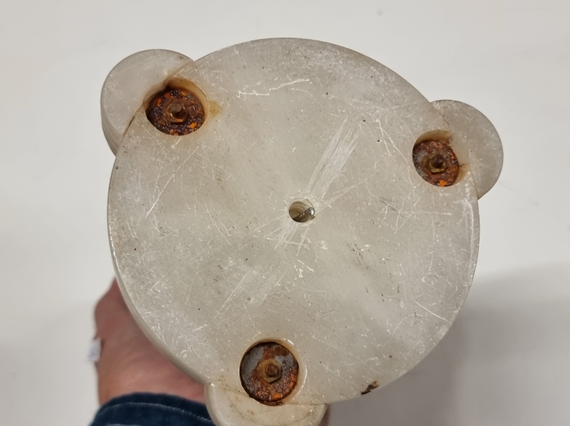 Kulumaa, kolhuja. Jalustassa liimaus. Korkeus 26cm