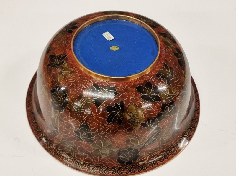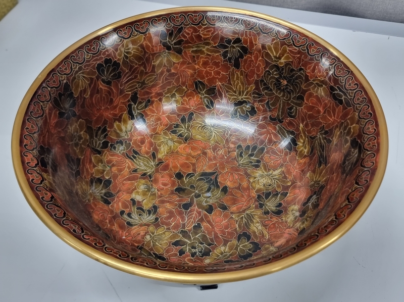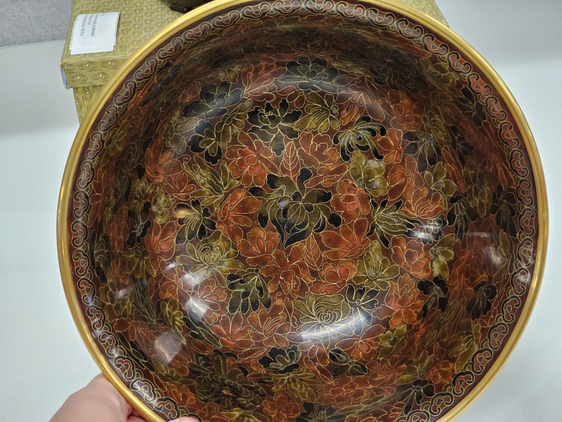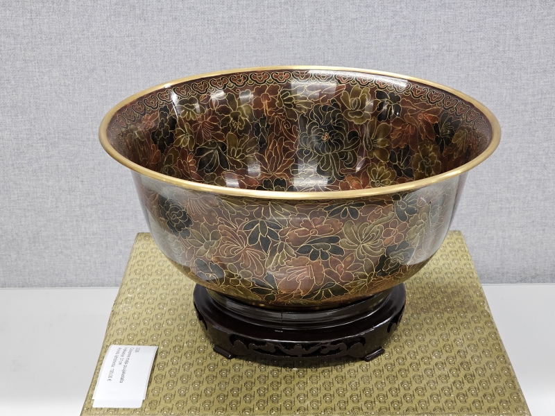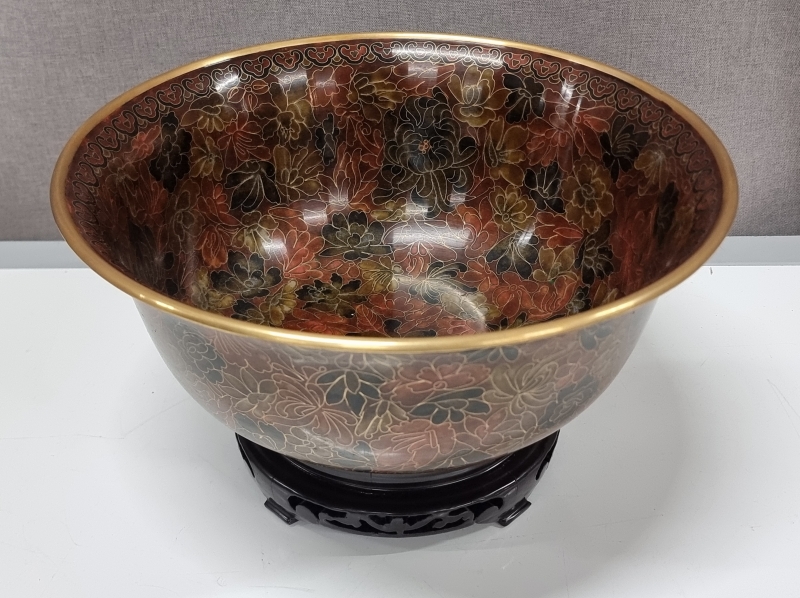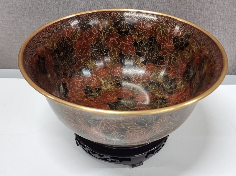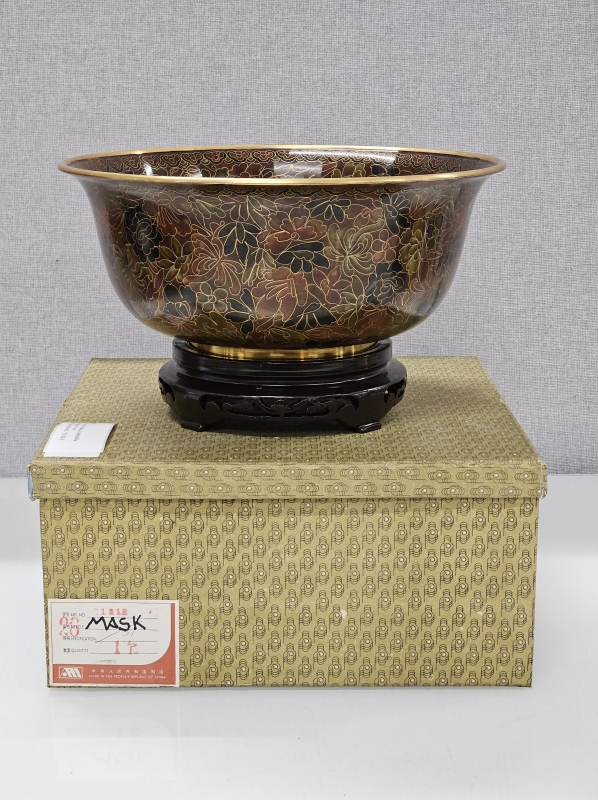 #2336 - Cloisonne malja puujalustalla + laatikko