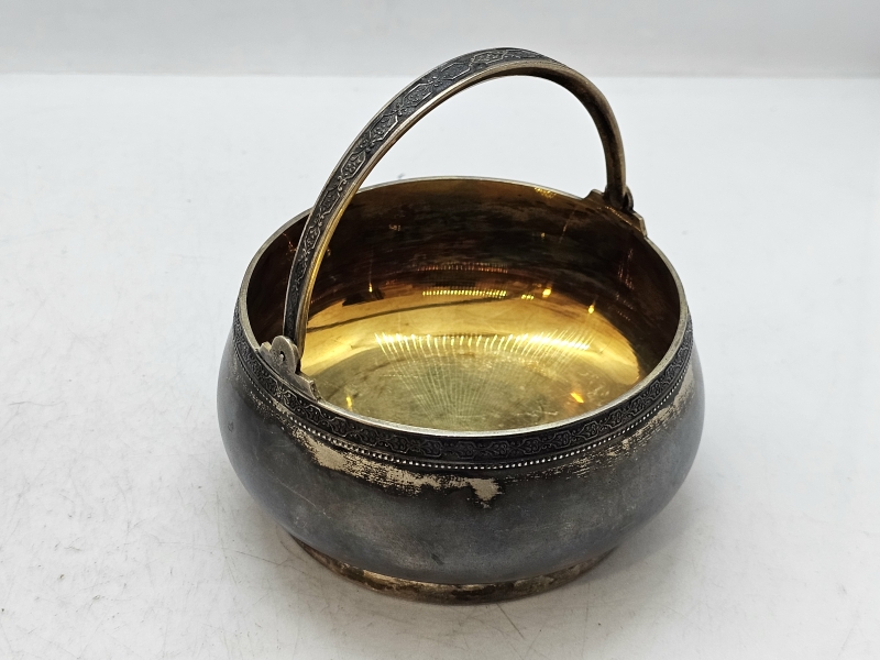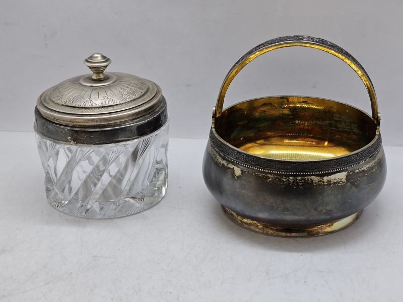 #1387 Neuvostoliittolainen hopeakori + kristallipurkki hopeapannalla
