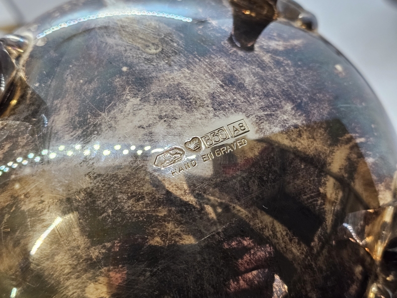 #1432 Hopeinen kahvikalusto käsinkaiverretuilla koristeilla, 3-osaa