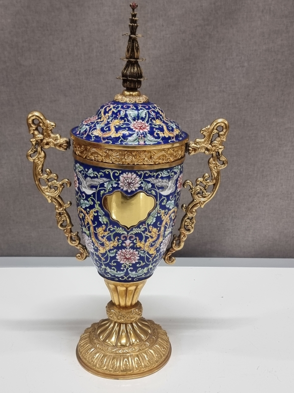 #1923 Hieno kiinalainen emalikoristeinen pokaali