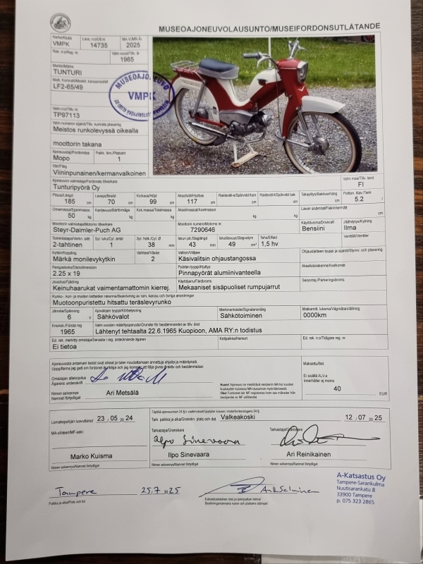 Kokonaan läpikäyty, entisöity ja 7/2025 museoitu hieno Tunturi mopo.