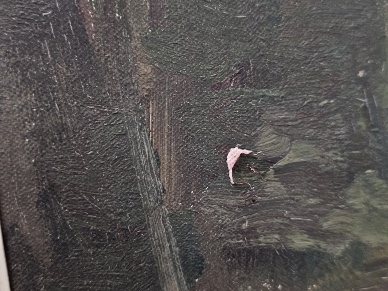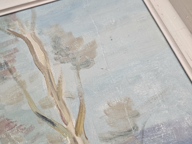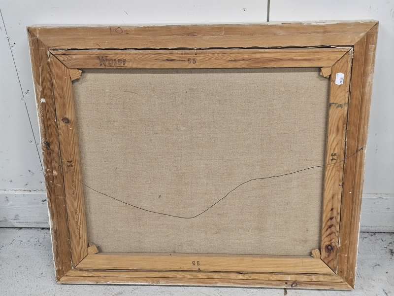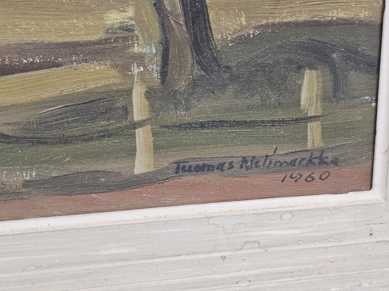 Kehyksineen 75,5cm x 64cm. Taulussa naarmuja ja puute maalissa