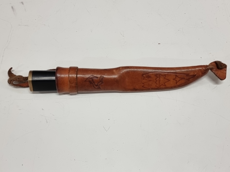 Tuppi ei alkuperäinen. Puukossa pientä kulumaa. Pituus 21cm