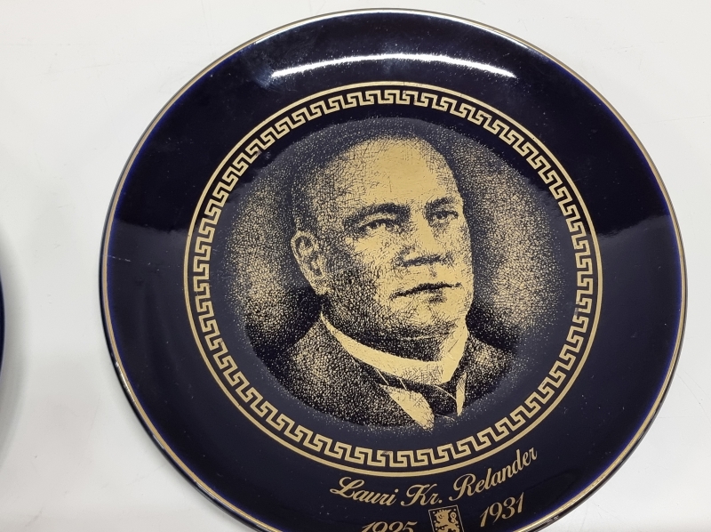 #1681 2 kpl Mannerheim painokuvia + 3kpl Arabian presidetti-lautasia