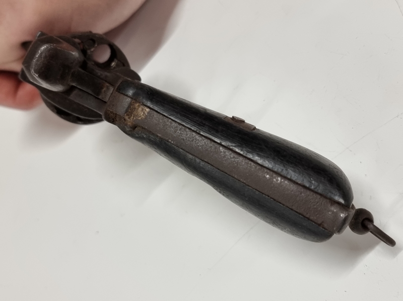 #1685 Antiikkirevolveri puukahvalla. Valmistettu ennen vuotta 1890 eli lupavapaa