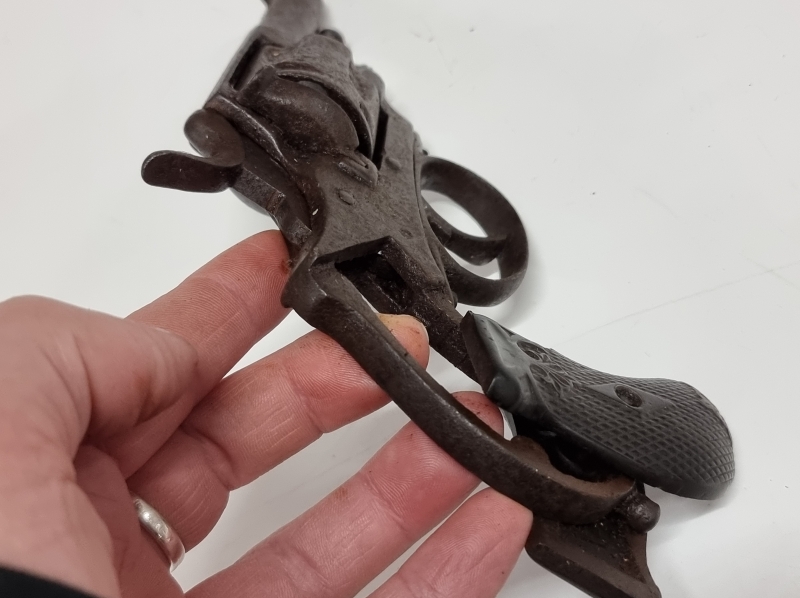 #1686 Antiikkirevolveri bakeliittikahvalla. Valmistettu ennen vuotta 1890 eli lupavapaa