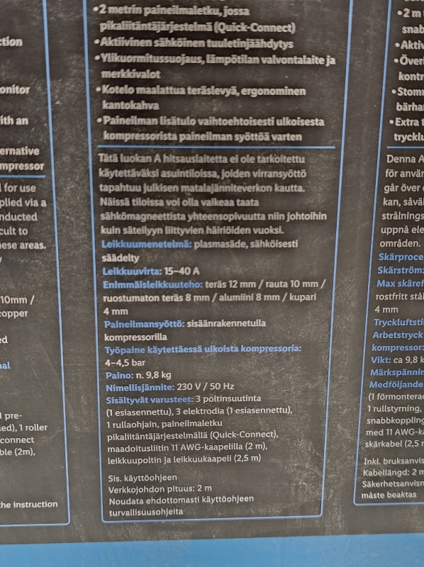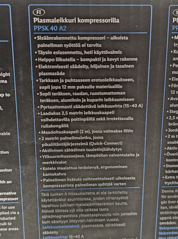 #2531 Plasmaleikkuri, Parkside PPSK 40 A2