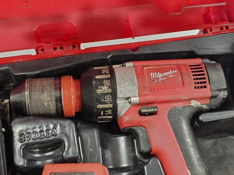 #2532 Milwaukee akkuporakone + salkku + laturi + 2kpl akkuja ym.