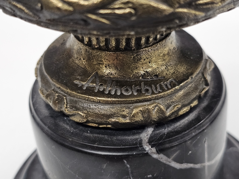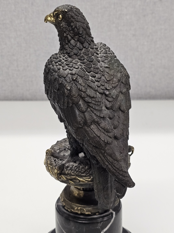 #1928 - Pronssinen lintupatsas marmorijalustalla