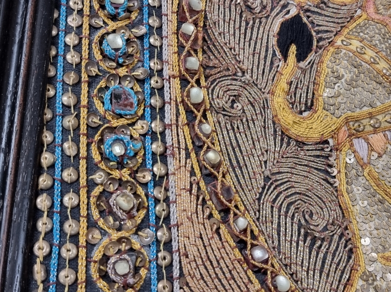 Metallilankaa, paljetteja ym. 95cm x 60cm, muutama koriste puuttuu