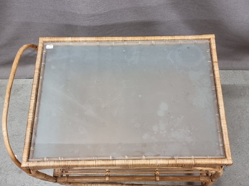 #2295 Rottinkinen tarjoiluvaunu lasikannella