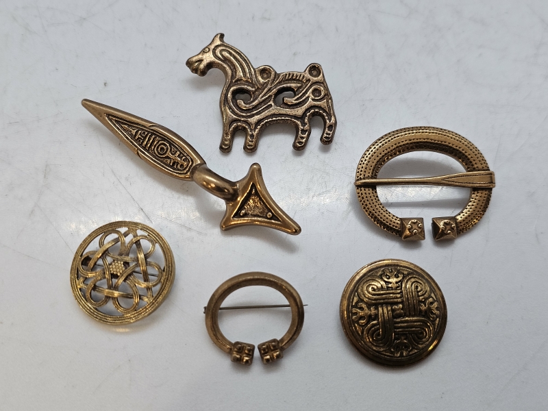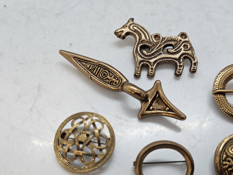 #1471 - 6kpl pronssisia Kalevala koru rintaneuloja