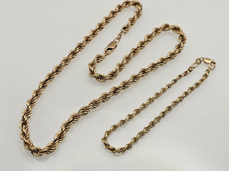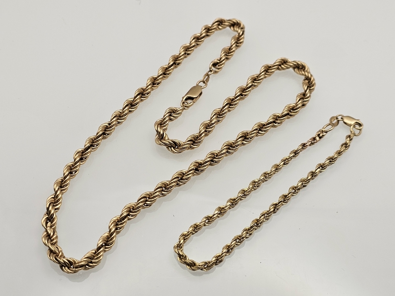 #1451 - 14k kultainen kaulaketju & rannekoru, 17,62g