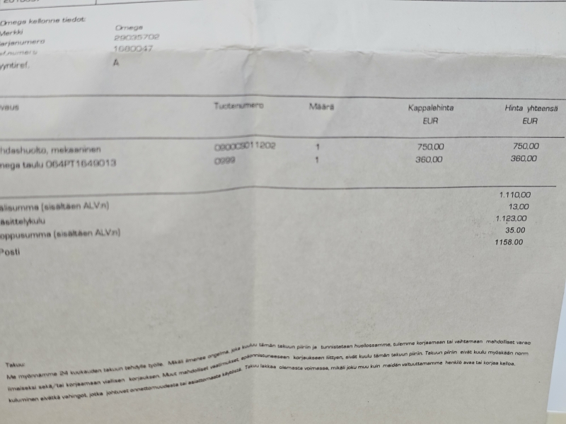 Bruttopaino 140,4g, myös ranneke kultaa. Tehdashuolto tehty 2024. Leveys 33mm