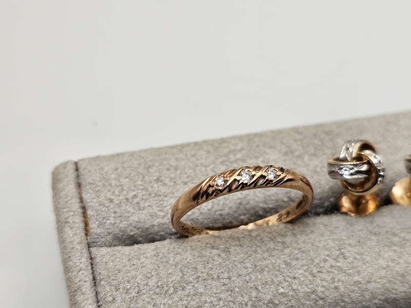 #1481 14k kultainen sormus ja korvakorut timanteilla, 3,22g