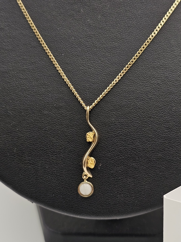 #1530 14k kultainen Assi Arnimaa-Leinonen "Lemmenjoki" riipus + kaulaketju, 6g