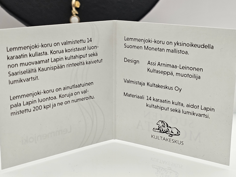 Bruttopaino 6g. Ketjun pituus 46cm. Numeroitu 56/200