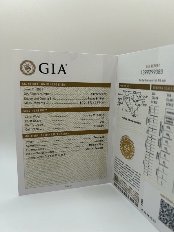 #1544 - 18k valkokultainen sormus 0,71ct Top Wesselton F VS2 (3 x EX GIA) timantilla, 3,32g