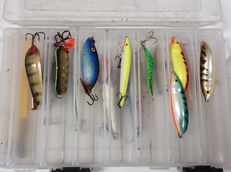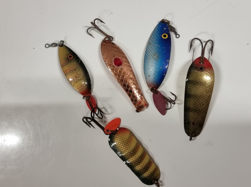 #2078 - Kääntörasiallinen vaappuja ja lusikoita, mm. Minouspoon, Rapala, Kuusamo