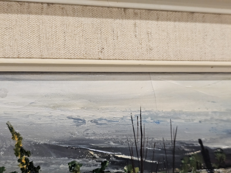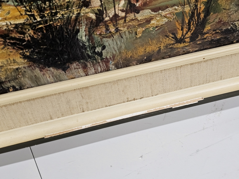 Kulumaa kehyksissä ja taulun väreissä. Kehyksineen 80cm x 59,5cm