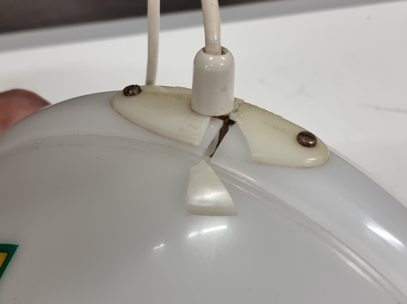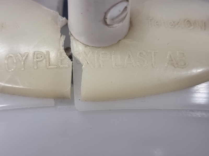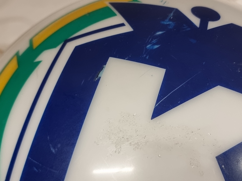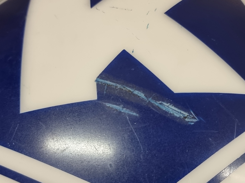 Naarmuja ja kiinnike halki. Halkaisija 33cm